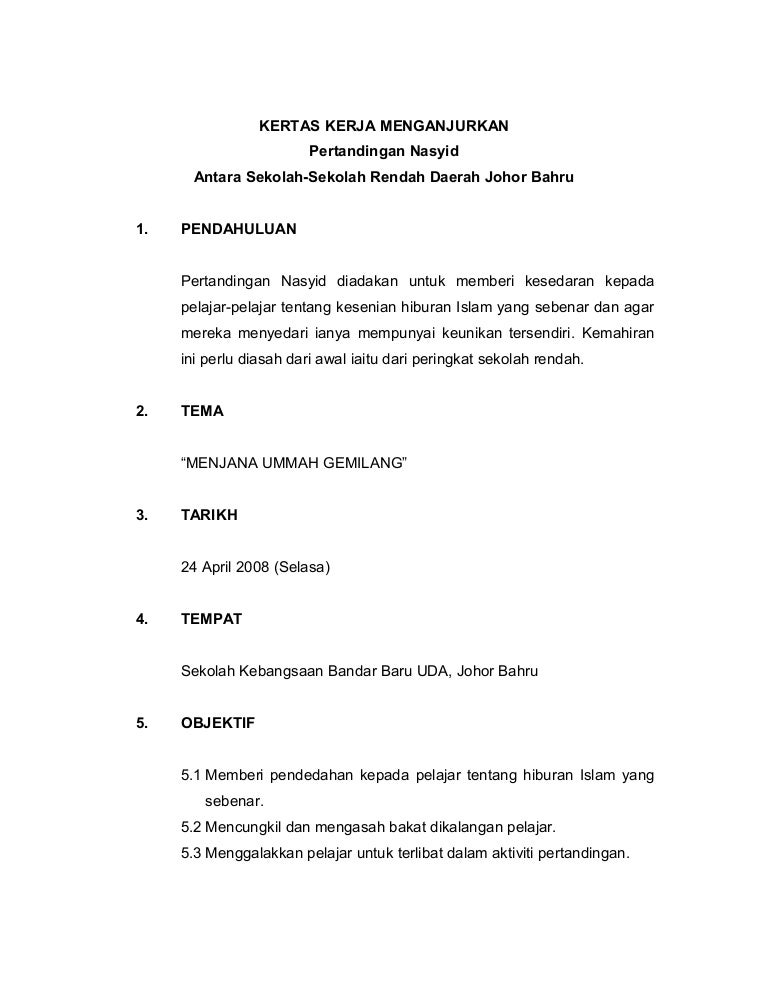 Kertas Kerja Menganjurkan Pertandingan Nasyid